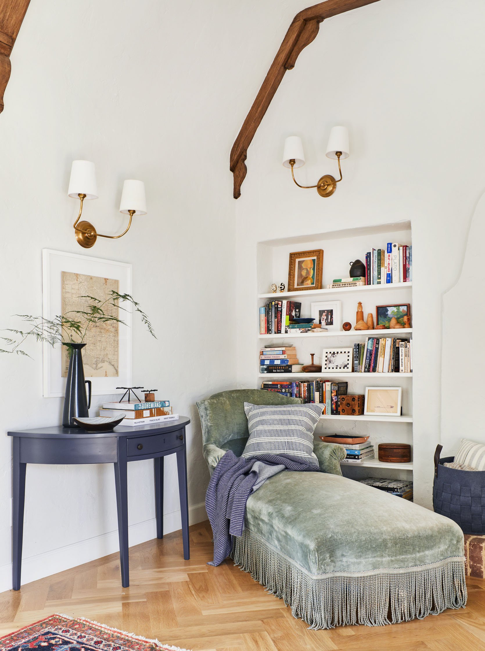I think if I had to name a favorite piece of furniture of ours, it might be my antique floral chaise lounge (followed up quickly with our coffee table). The older I get, the more I just love mixing different eras of my life in a home together, regardless of the current home style architecture/style. In fact, I can’t even think of a type of home that I couldn’t make this chaise “work”. A few of you wondered if it looks good next to the quilted mushroom stools because they are just such different styles, almost like coming from different worlds (old world European meets American country). I think I would wonder the same thing, but I didn’t even hesitate. I guess it tracks because I used to say that my style was a mashup of Sofia Coppola’s Marie Antoinette + Footloose (Kevin Bacon’s version) + The Royal Tenenbaums. While I don’t know if it was ever true, accurate, or maybe just a fun way to talk about style (I fear I’m not that eccentric), I do still really love fringey, velvet, florally things while also loving unpretentious rustic, primitive, and casual plaid elements. I think they do in fact work together because of the shared color palette and the fact that they are both cleaner lined with very decorative fabric? But let’s revisit this piece.