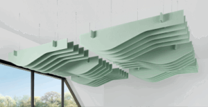 Kirei, a provider of sustainable acoustic design materials, is proud to announce the launch of its EchoSky Neu Baffle System. With EchoSky Neu, Kirei reimagined its trusted EchoSky baffle system to do more with less, replacing metal frameworks with lightweight PET crossbars. This new and improved system reduces weight, simplifies handling, and lowers the number of required hanging points, ultimately streamlining installation.