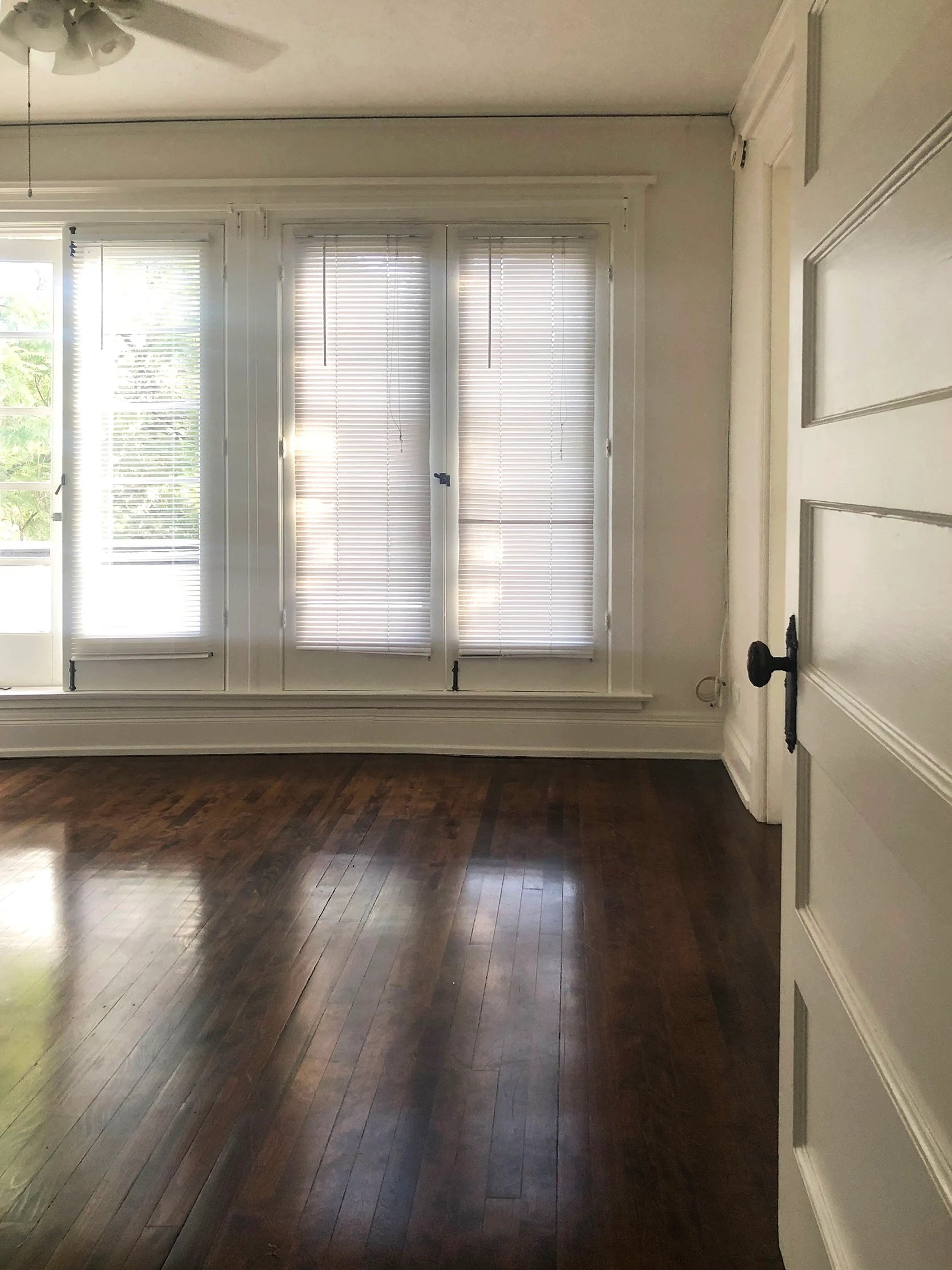 Those blinds were next on the list. I have heard that legally, landlords need to provide privacy on windows, but curtains would be good enough for me. Those blinds were far too sad and generic for this room. But boy, is that moulding so special!