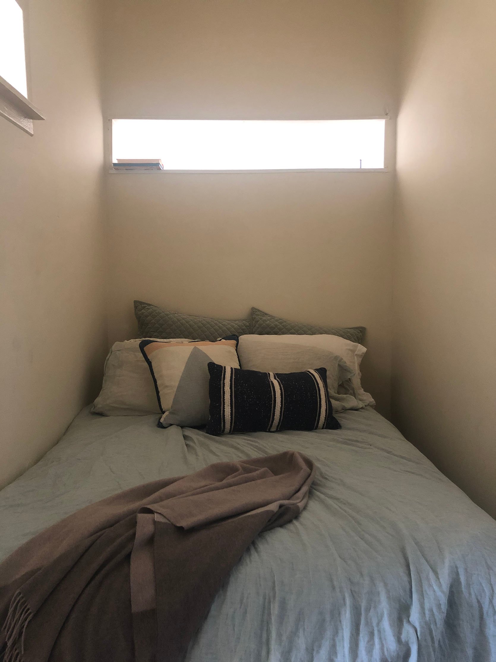 My full-sized mattress slid right into this little nook in this apartment. It was “quirky” for sure, but honestly, I was so grateful that my studio had a layout in which I could pretend to have a sectioned off “bedroom”. But now you can see why the idea of nightstands and even a queen-sized bedroom was THRILLING.