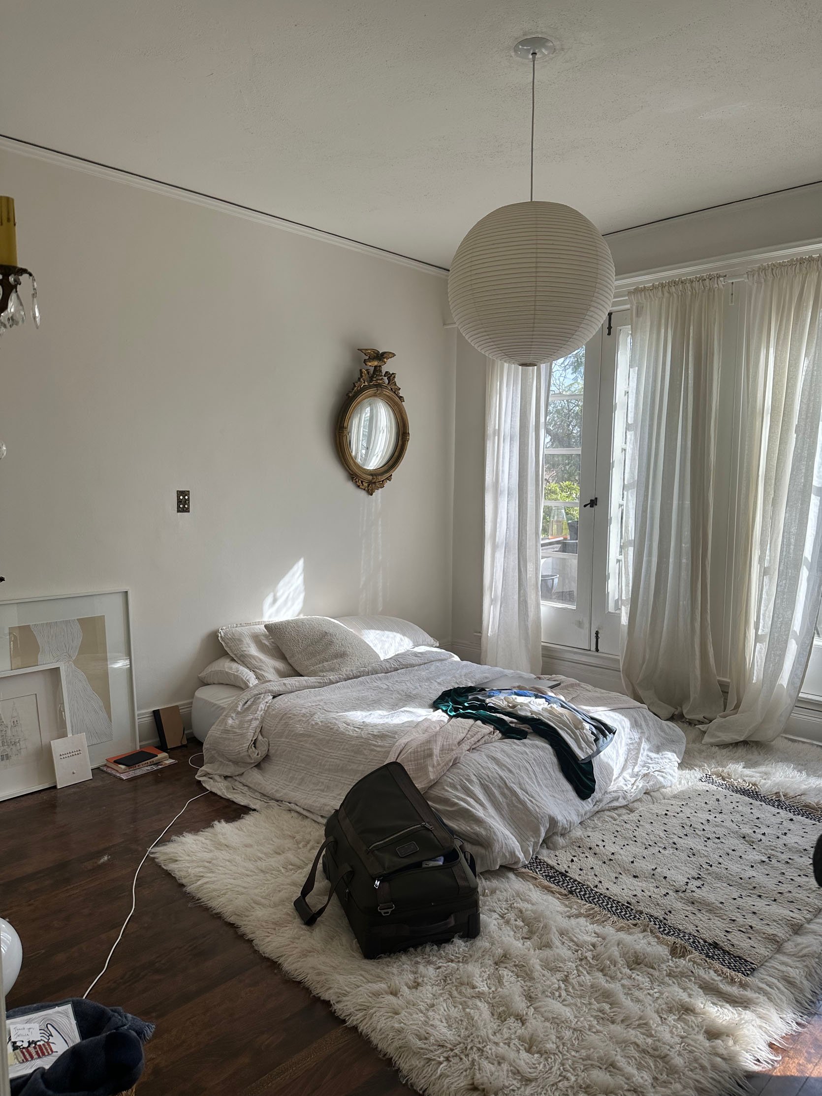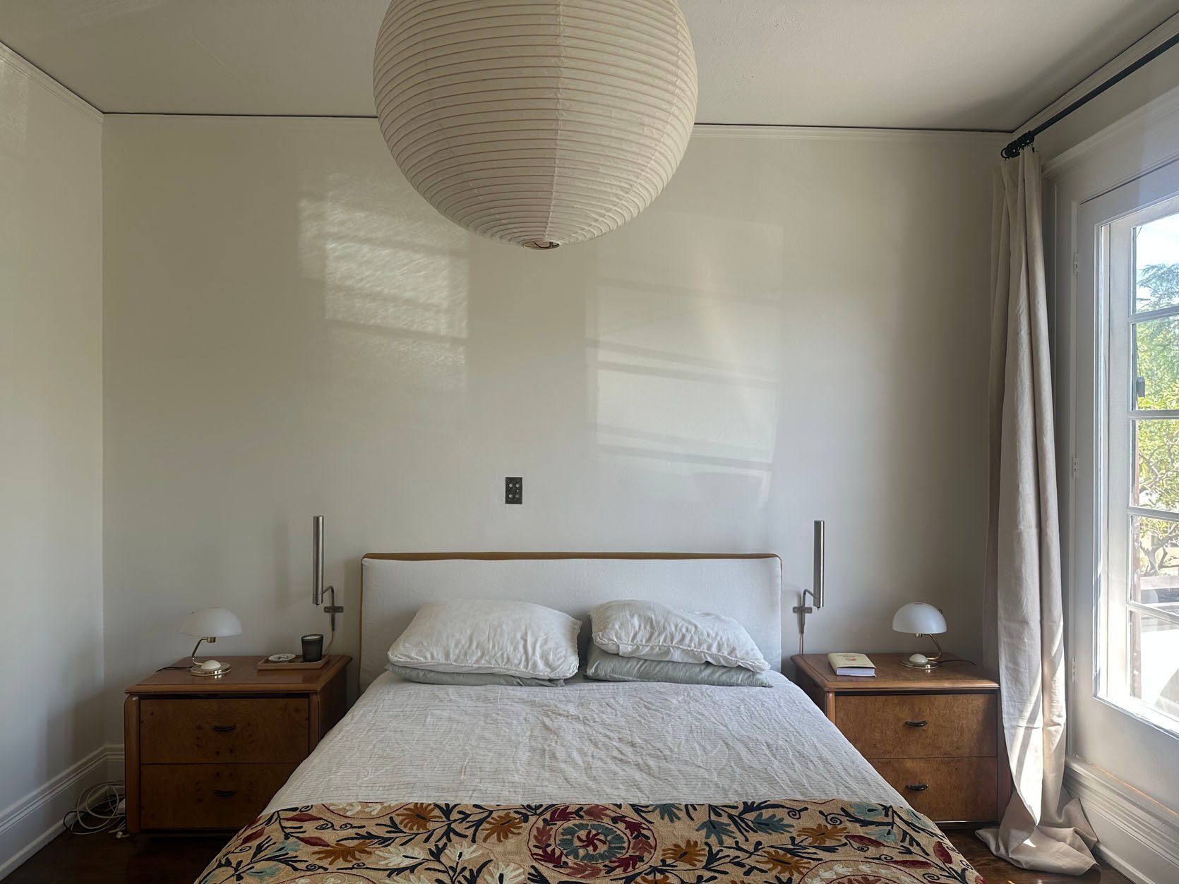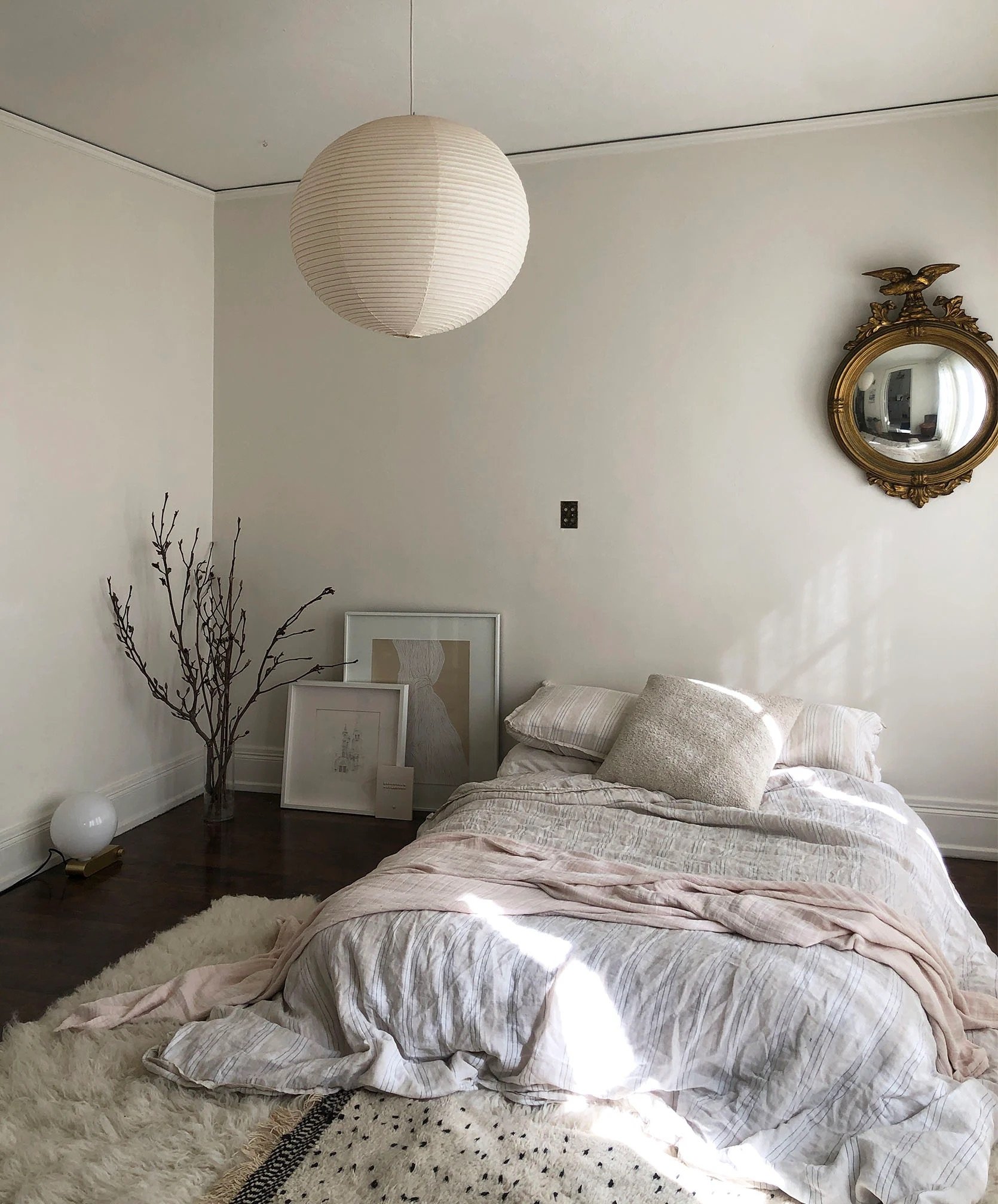 You may also be wondering why I needed two lights on each nightstand. Well, I didn’t, but I wanted them all for two reasons. Reason one is that I knew it would look great. Reason 2 is that the Japanese ones can be a little annoying to turn off and on since they look best on the outer part of the nightstand and the cords come out from the back of them. This means the switch is kinda far when you’re in bed. As I write this, I know it sounds pathetic, but I also look at lamps as sculptures/art, so if nothing else, I have 4 pieces of functional art that look great together. In case you are trying to count, I have seven lights in my singular bedroom. I tell you in every post I write about lighting that I’m obsessed, so at least you know I’m telling the truth and really walk the walk, ha.