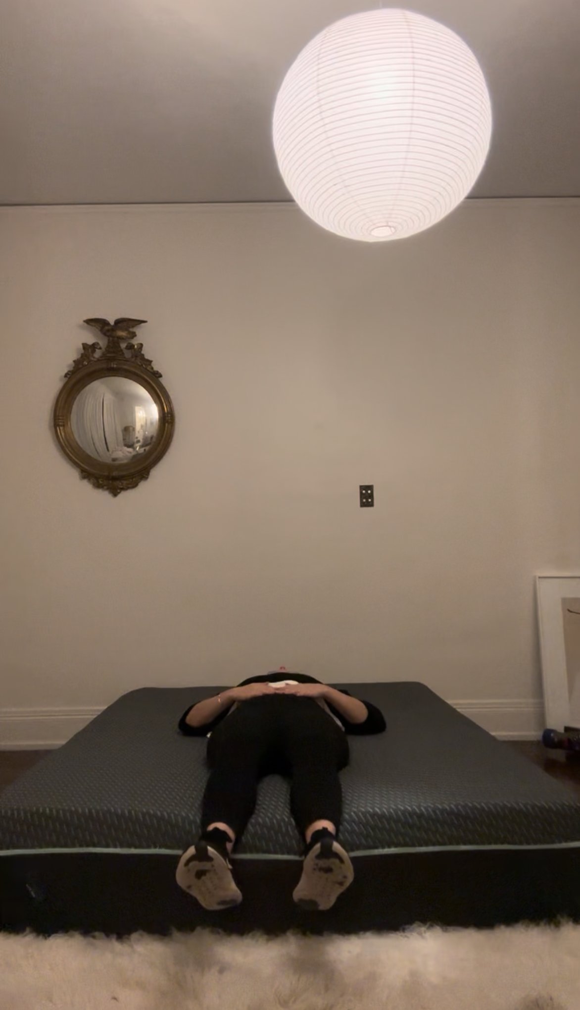 Here she is on the bed!! Now, when I was ordering, a few of my friends were in the king-size mattress camp. Could I have fit one? Yes. But it would have been tiiiight. Also, my parents were always of the belief that they didn’t need or want any bed bigger than a queen because they didn’t want that much space between them. I know that is not everyone’s feeling for multiple reasons, and I totally get that. However, I have always loved that sentiment so much. And given that, for the foreseeable future, this bed would just be for little ole me, and it would fit better in my room, a queen was the obvious choice. If I meet someone who can’t comfortably sleep in a queen-size bed, we can maybe talk about it, ha.