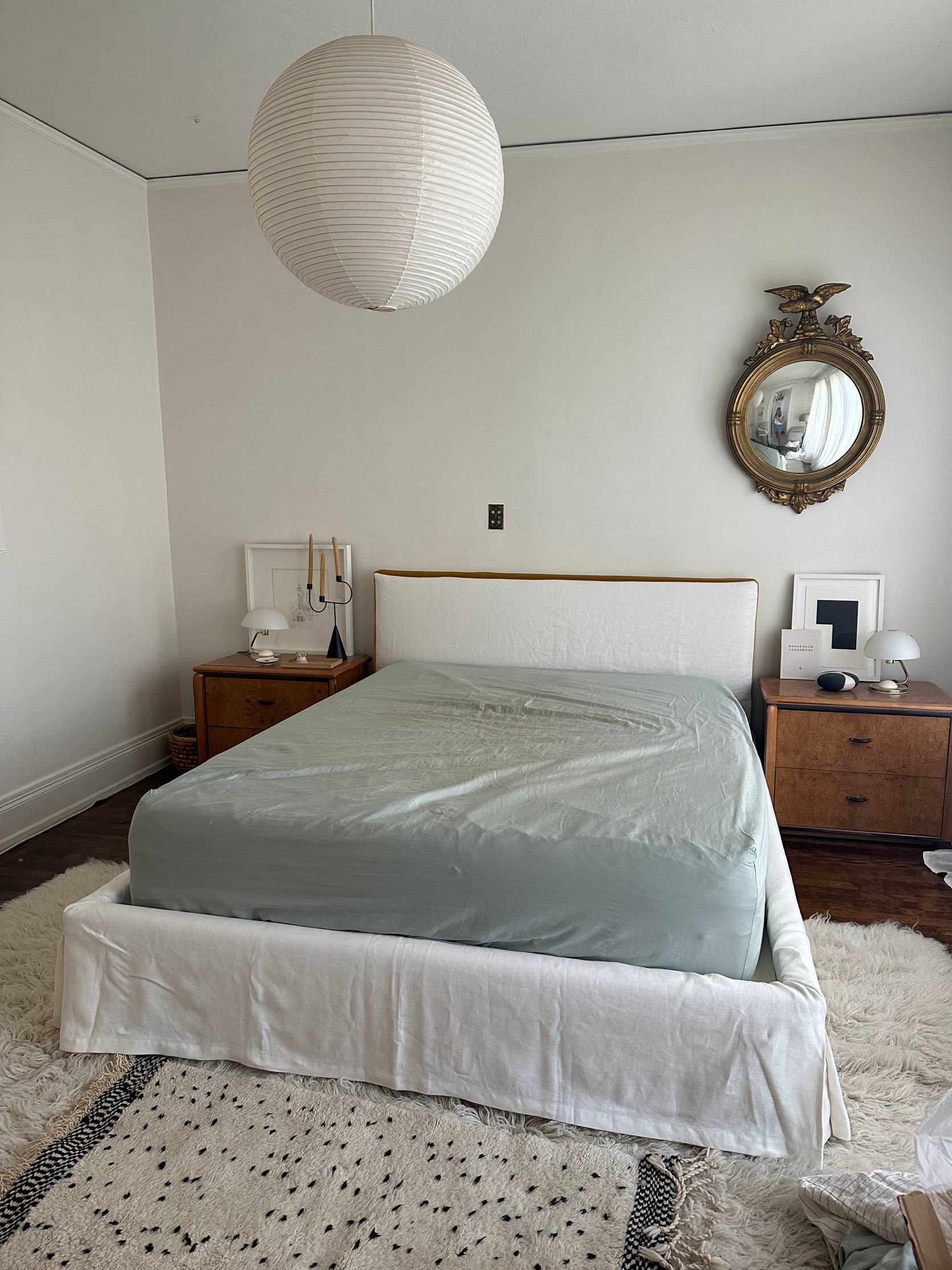 This is how my bedroom looked for at least three years. Yes, a full-grown, design-obsessed adult was sleeping on the floor. I just didn’t want to get something I didn’t love or choose something before I really pulled a design plan together that ultimately didn’t work. Did I tell myself, “Jess, it’s kind of an airy, sexy, loft-chic look,” aka a totally made-up style to make myself feel better? Yes. But was I any better than the headboardless men my friends and I try to avoid? No. No, I was not…until…