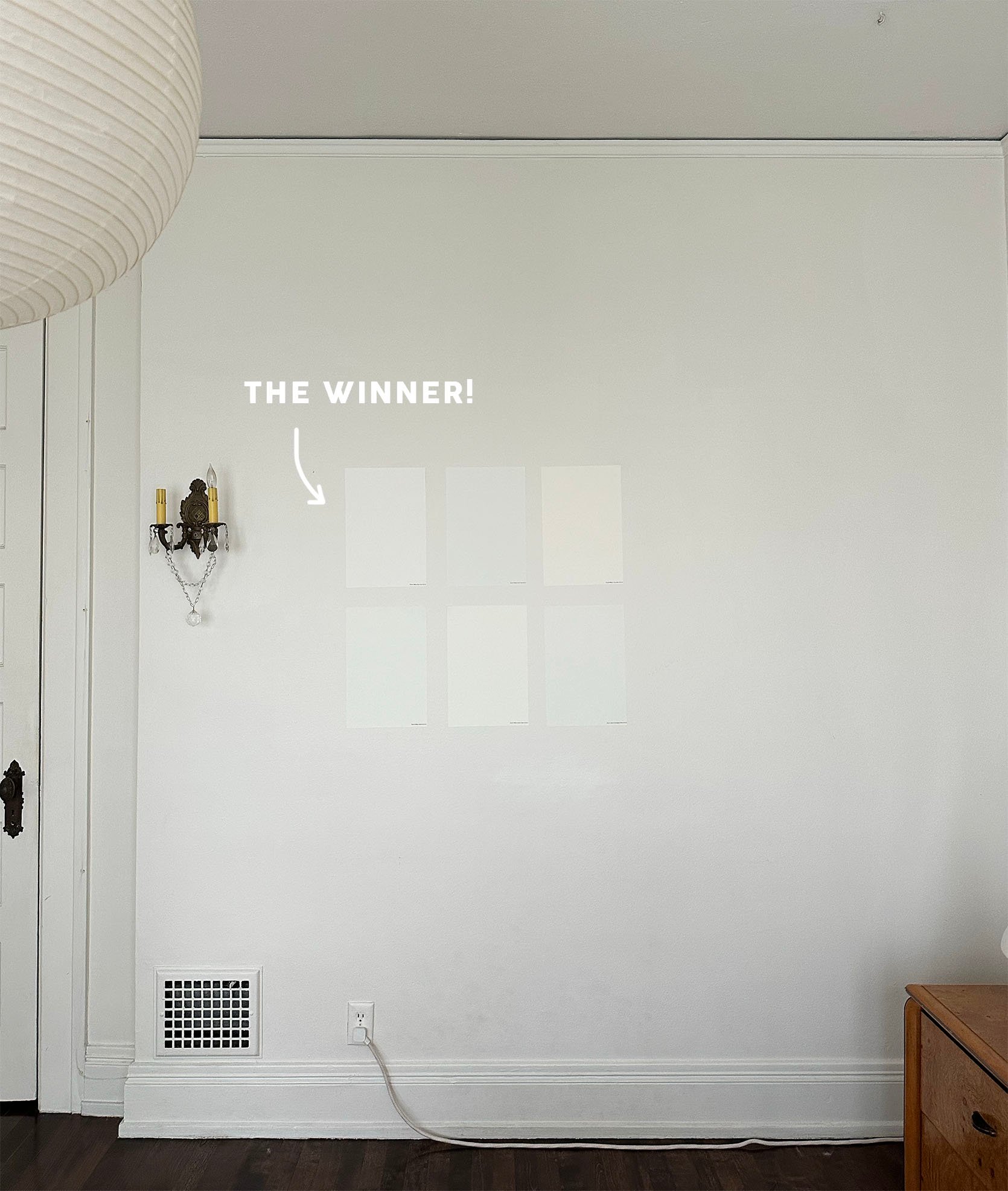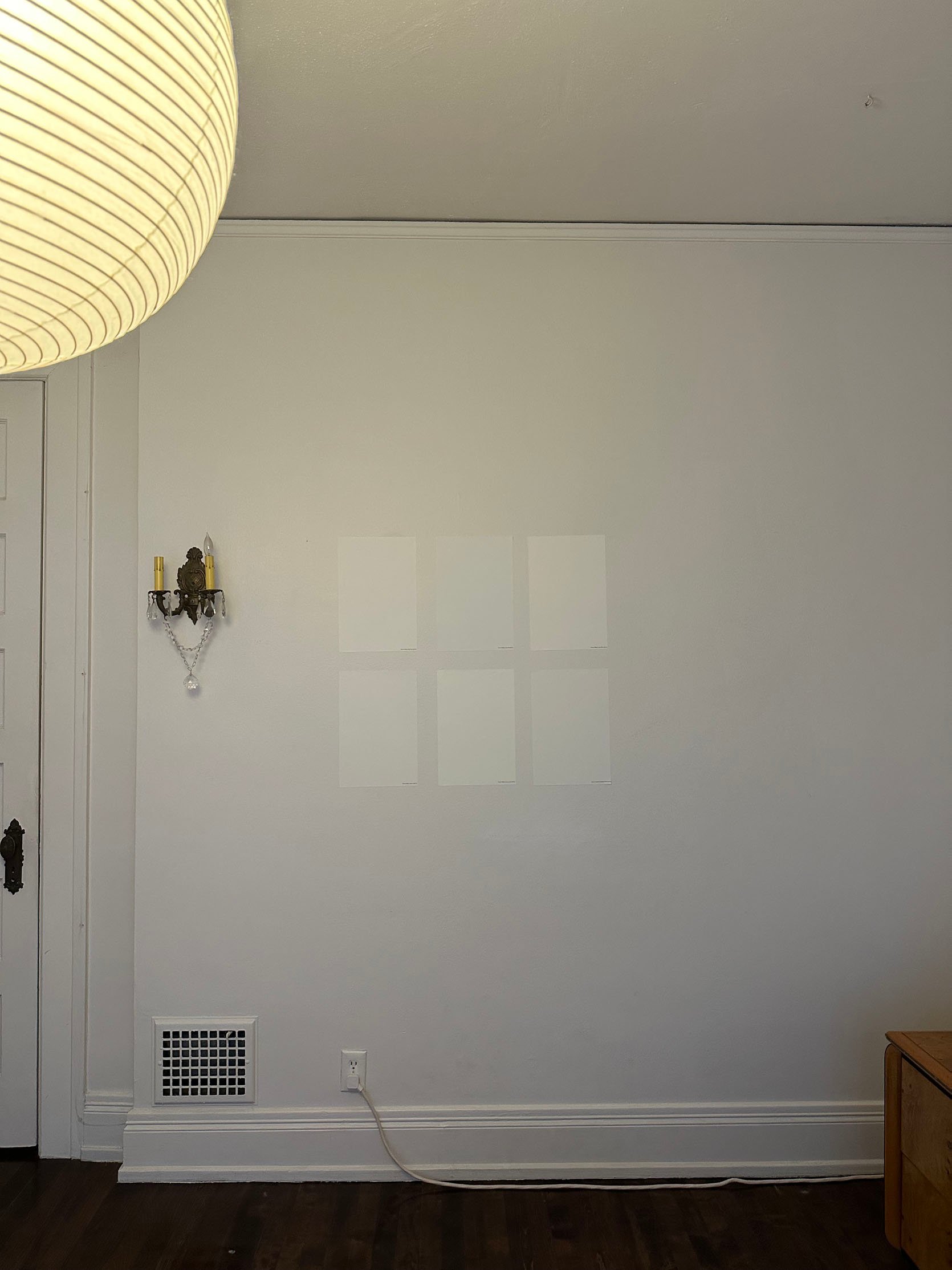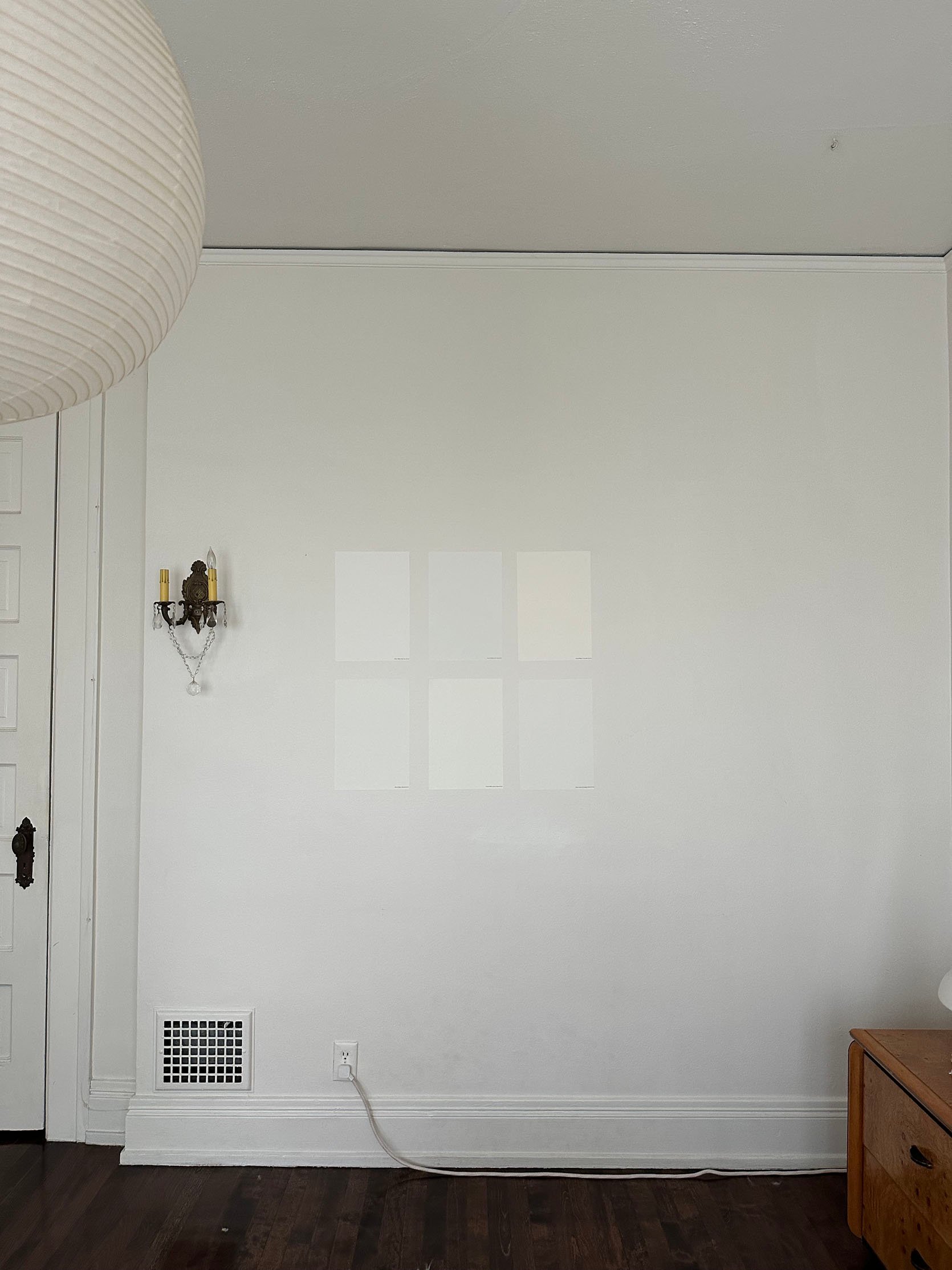 I believe I have the world’s kindest and most wonderful landlord. However, I am fairly certain this room did not get repainted before I moved in. The ceiling had a discoloration spot, and overall, it just needed a fresh coat. I emailed her, asking if I paid for the paint, would she be willing to pay for the labor. I showed her the areas of concern, promised her it would be another white (lol) as to not do anything crazy/non renter-friendly, and she kindly agreed. PHEW. Next stop was getting my Samplize paint stickers.