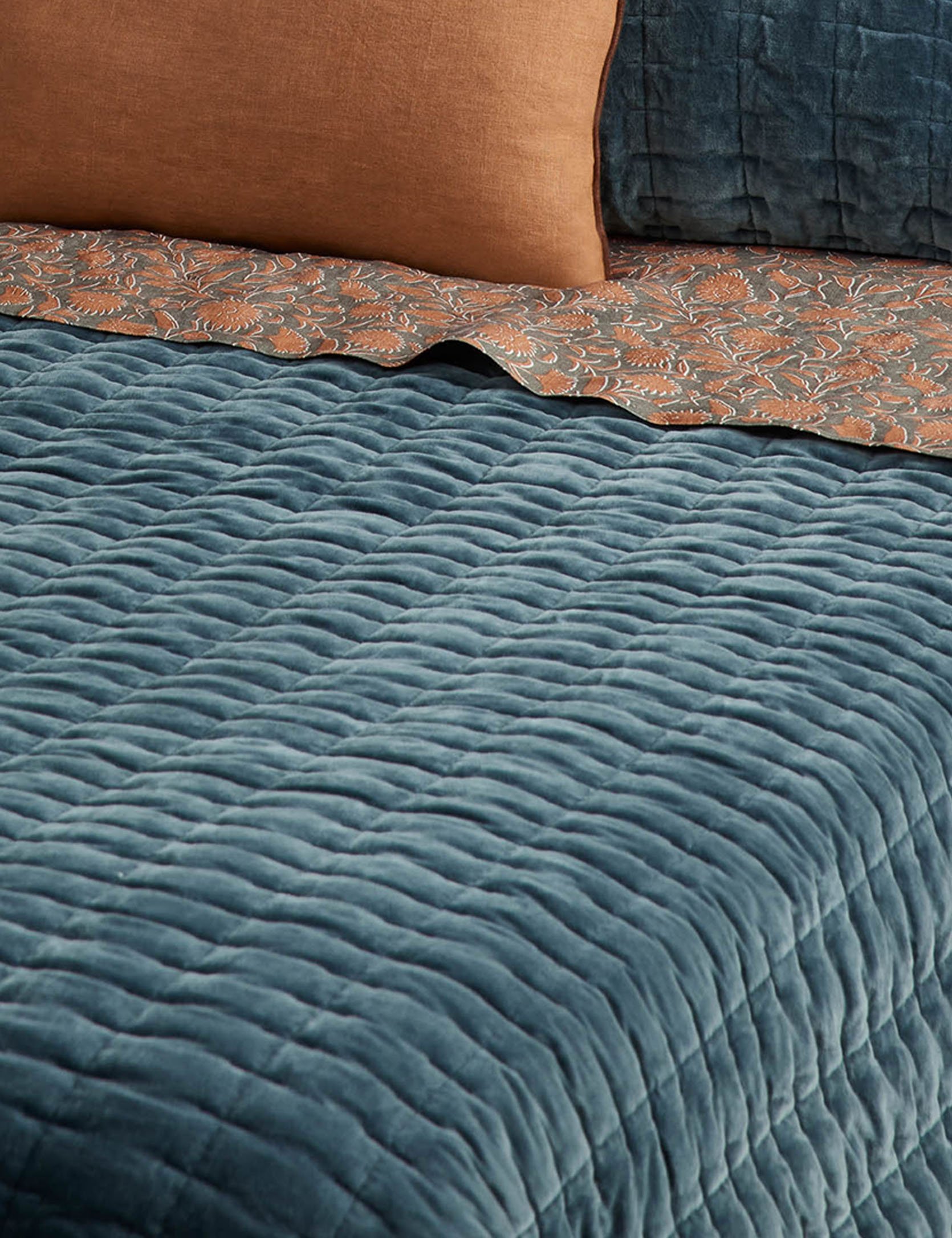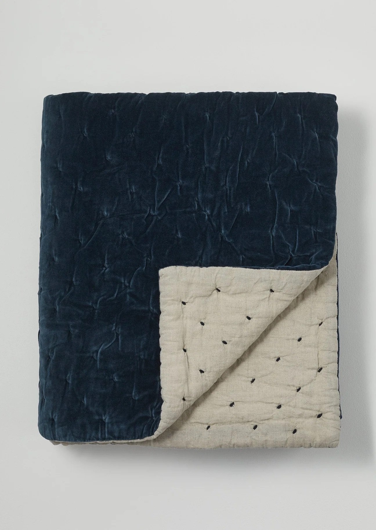 Cotton Velvet Quilt | Large Hand Quilted Velvet Throw
