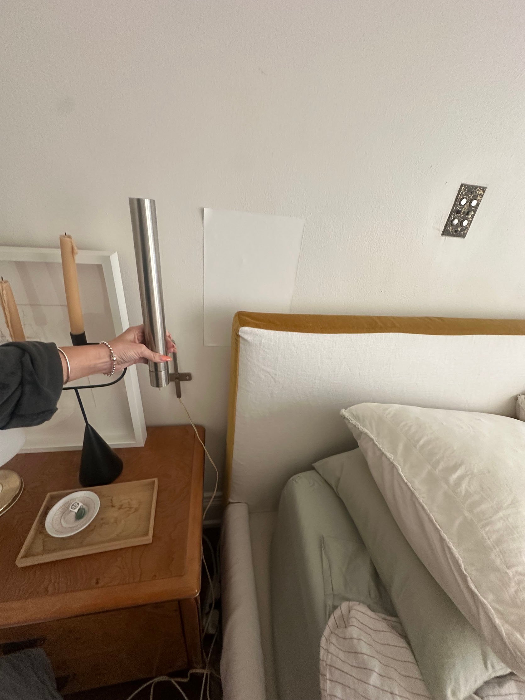 Since my cool tile idea was in the trash, I needed to come up with something I liked but didn’t feel too much for these walls. Oh, and if you’re curious about the little plate above my bed, I think it was some kind of call system when this building was a single-family home. So cool.
