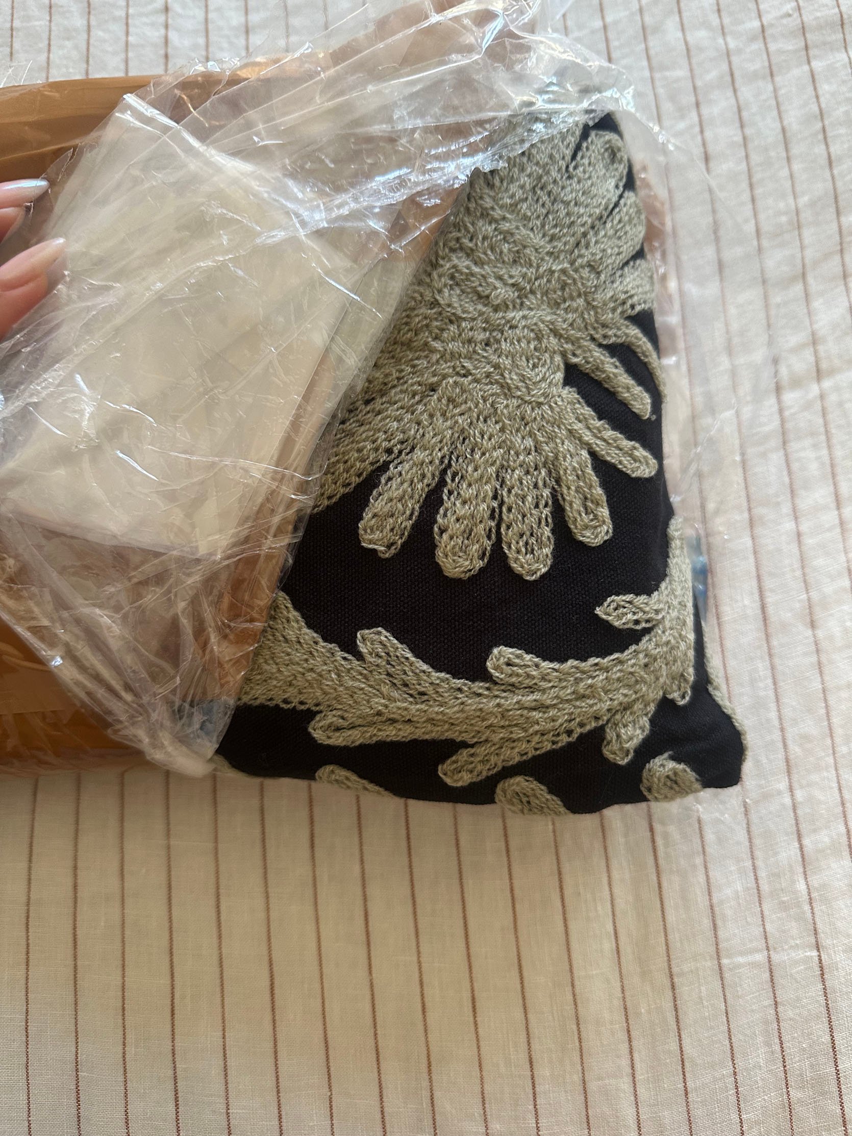 The description of this one said black, but the photos gave it sort of a gray-blue undertone. Let’s just say it was very black, and the embroidered part was much grayer than in the photo. I knew it wasn’t a fit. But the other was actually perfect, like spookily perfect. I will say it’s much brighter and warmer-toned in person, in case you want to order one.