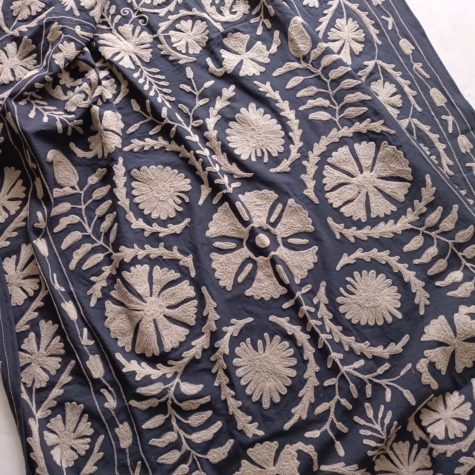 Indian Black Suzani Cotton Handmade Floral Bedspread | Hand Embroidered Suzani Wall Hanging