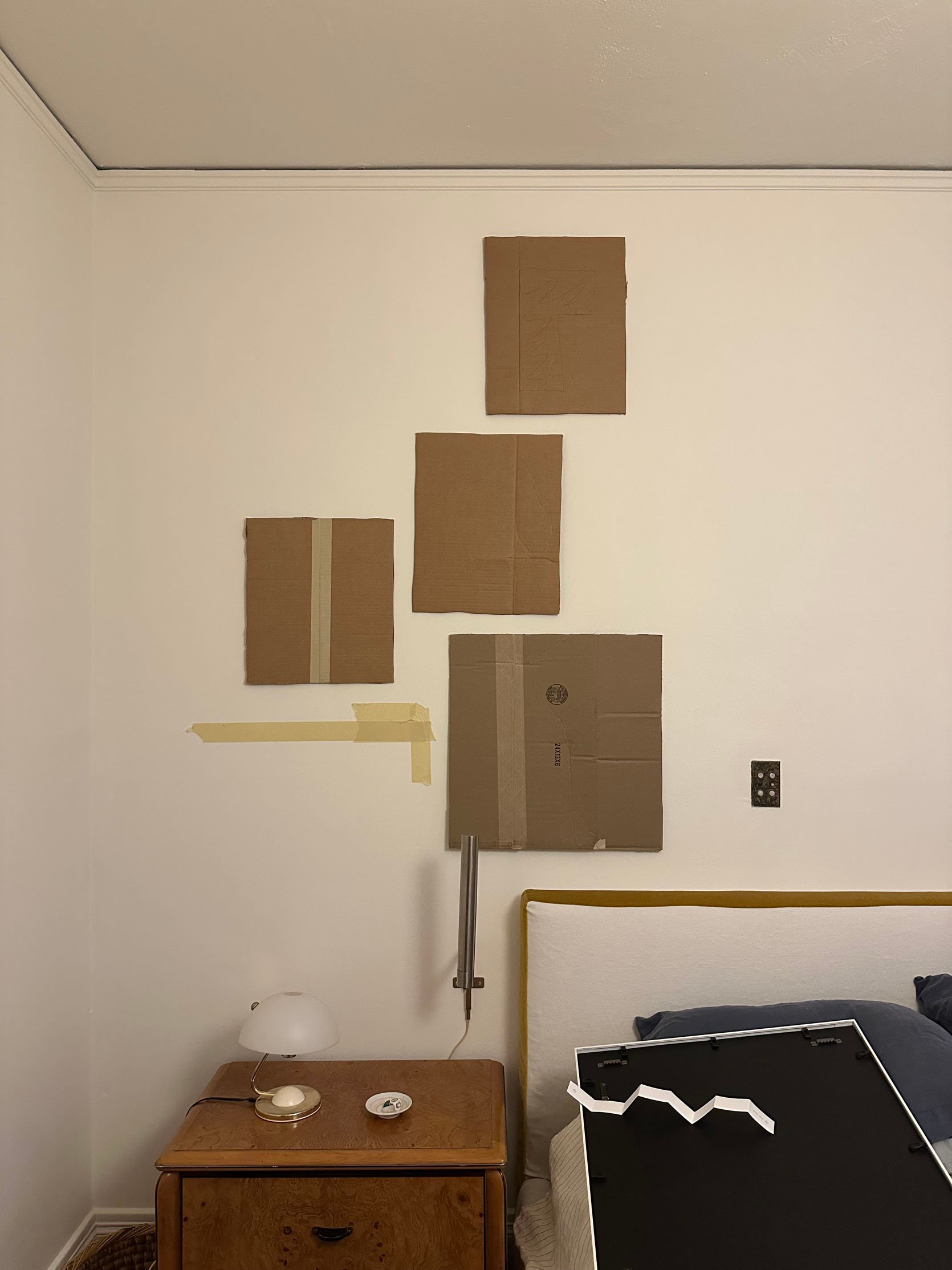 My sweet cousin came to help me again (she was my co-art hanger in my last living room), so this only felt right. Her sweet, perfect baby simply did not need her more than I did in this moment:) But before she came over, I made nearly exact cardboard cutout sizes of the pieces I wanted to use, so it was really easy to visualize. If you don’t have too many pieces and you’re putting together a gallery wall, I highly recommend this method.
