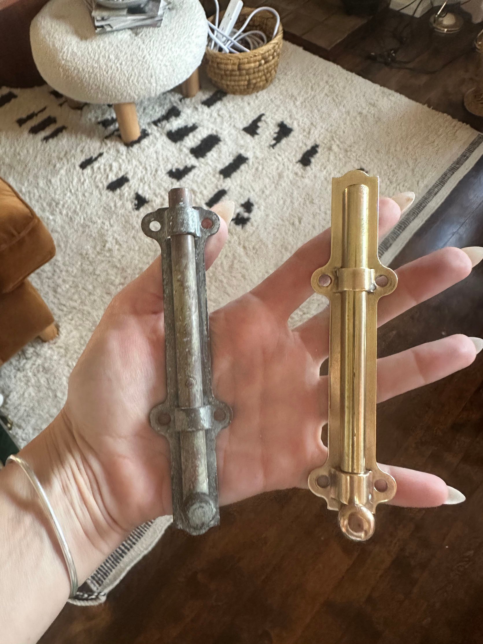 I knew my landlord shopped at Pasadena Architectural Salvage, so I stopped by to see if they could help with a few missing pieces I needed. Lucky for me, they had exactly what I needed. Less lucky for me, they were $55 each. I had to get three, if I remember correctly. But also, this is an old, special house that I am part of being a keeper of. While I’ll put my style twist on some things, for the real “house” details, I want to make sure I’m being really thoughtful and will leave it better than when I moved in. And don’t worry, I still had to polish the new additions too.