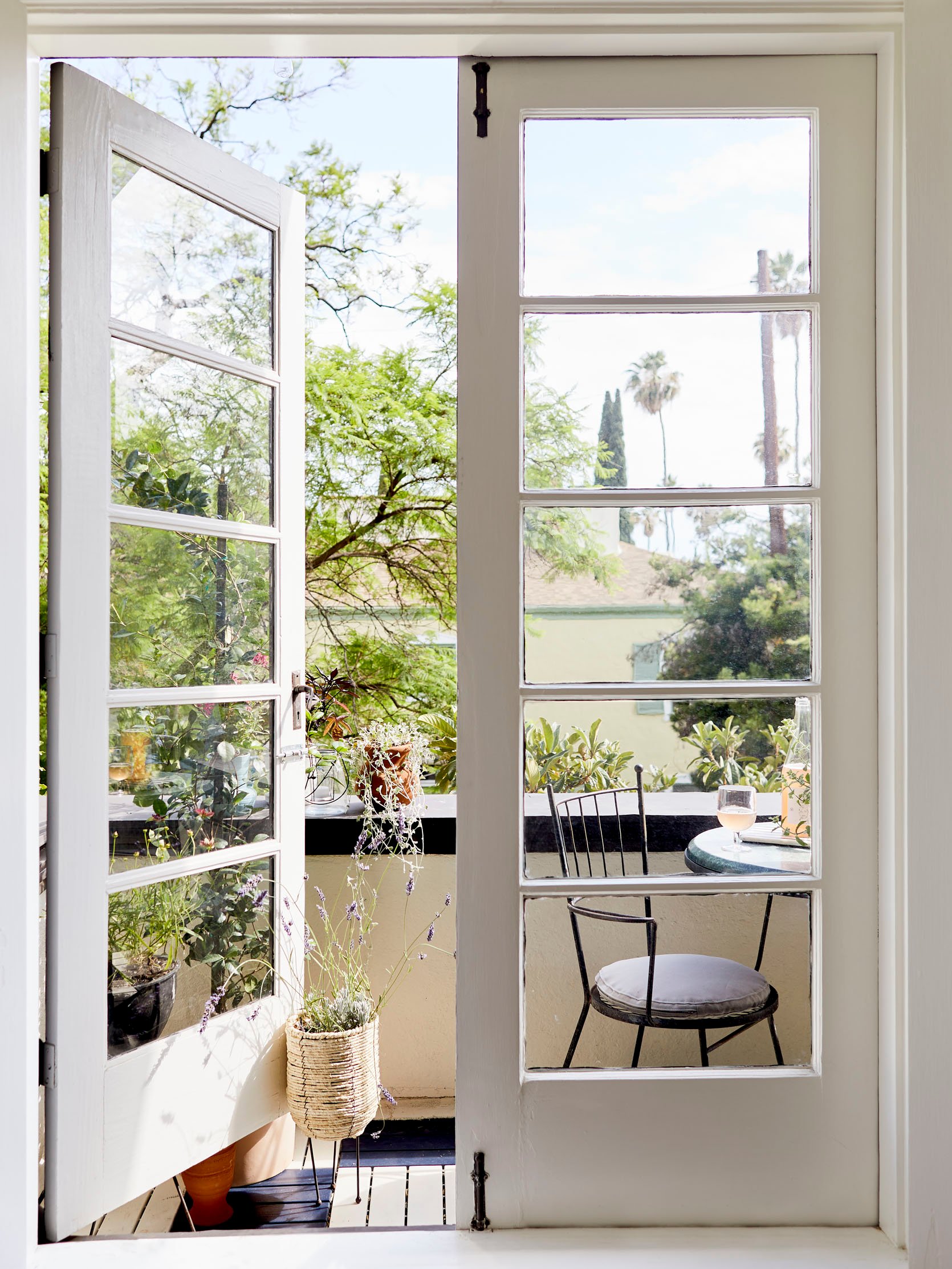 And just for fun, here’s a little reminder of what the balcony looks like. I did have to spruce it up for the shoot, just in case (aka re-spray paint some of the tiles with a makeshift cardboard barrier). As proof that there’s always one DIY per reveal that nearly does me in, for this balcony, it was these tiles. But after I was done, I was thankfully so in love with how they turned out. While I didn’t totally consider the design of the balcony when designing the bedroom, I have to say I think they work pretty well together – a little vintage, a little new, and a checkered pattern:)