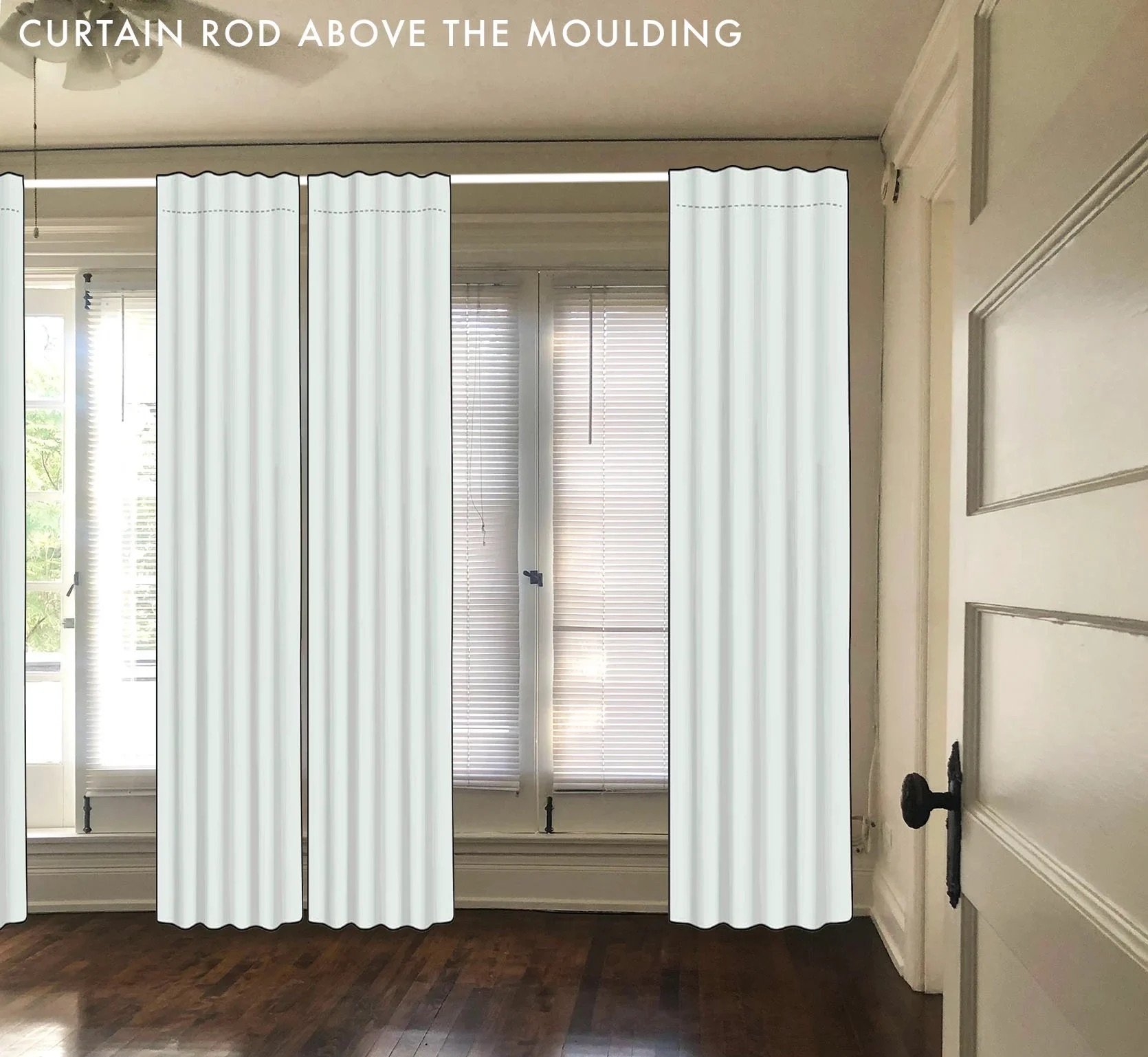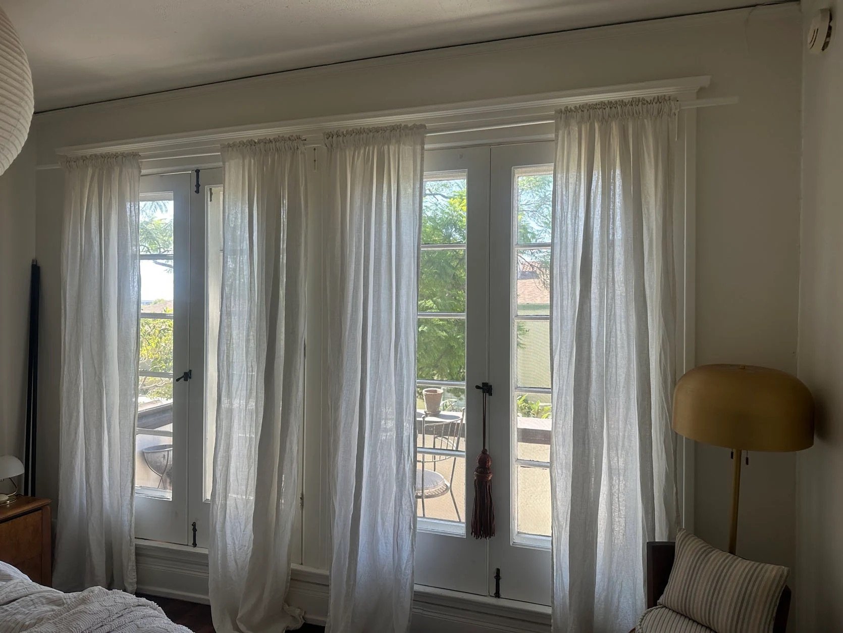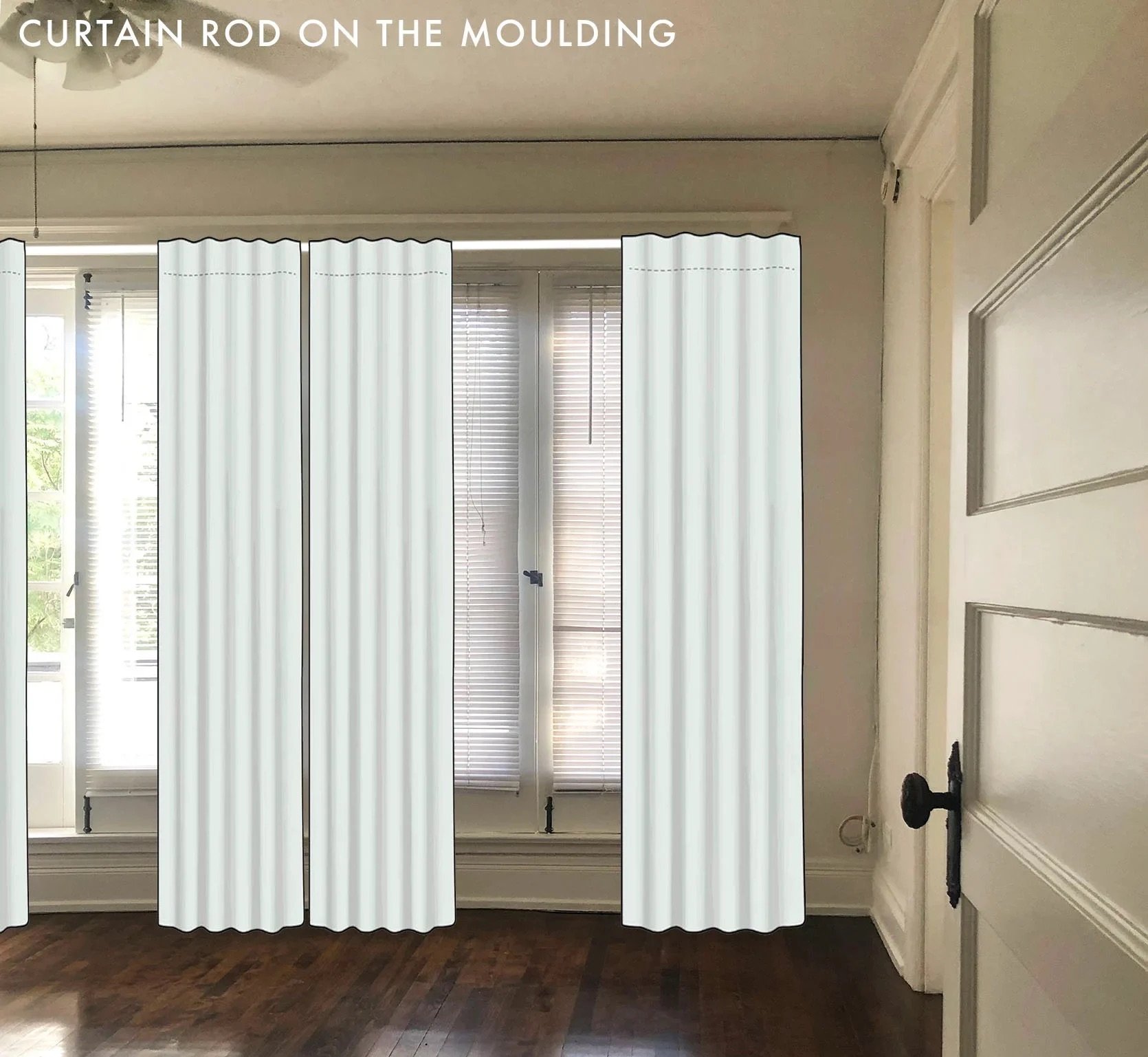 Here’s the before of how the rod in my bedroom was installed. I understand wanting to show off the moulding, but ultimately, making the room feel taller and bigger was more of a priority to me.
