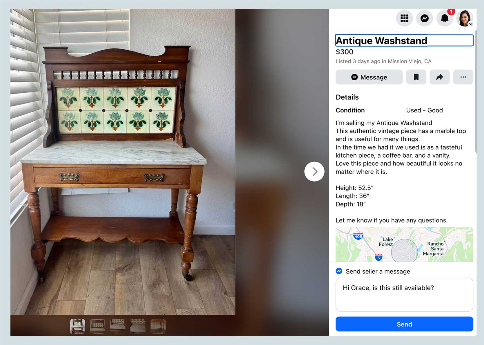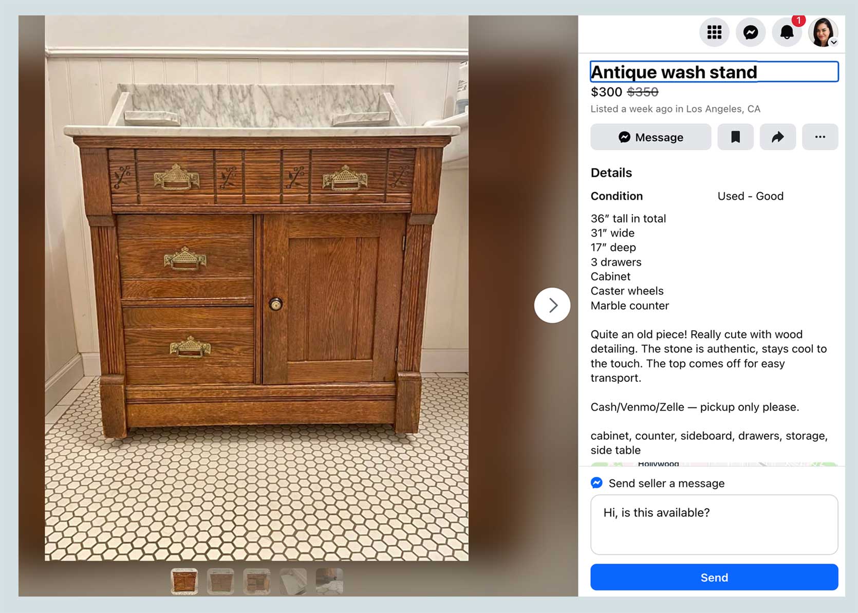 Welcome back to another installment of what I’m loosely calling “Marketplace Marvels.” Or perhaps “Secondhand Scores”…[edits headline because I like that better]. The title is a work in progress, but the heart is the same: What can you do with all those interesting, affordable, and durable vintage and antique finds you scroll or walk past on Facebook Marketplace, Craigslist, or at your local flea market? Don’t get furniture FOMO; let’s learn about them, figure out what they should cost you, and see how other people are using and styling them, shall we?