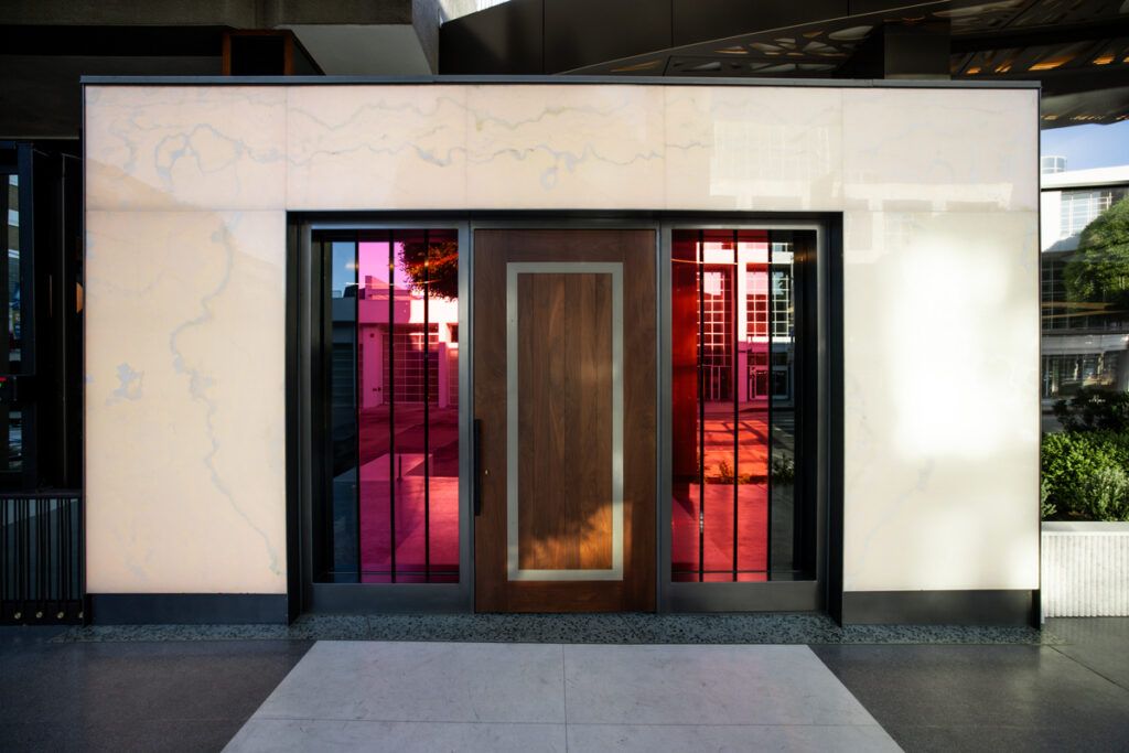 A custom-colored interlayer brings the façade to life, casting bold pink and red reflections that shift with the light. According to Kelly Architects, the pink façade glass draws inspiration from California sunsets, lipstick and roses, as well as the wellness culture that Beverly Hills is known for. The vibrant hue symbolizes charisma, and the team sought to thoughtfully reinterpret that spirit for the city of Los Angeles.