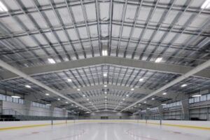 The project scope included the construction of a new 40,300-square-foot steel-framed, pre-engineered metal building, inclusive of the new rink complex with a conventional 200-foot by 85-foot ice sheet. The fossil-free facility also features four High School team locker rooms, four dressing rooms, public toilets, bleacher seating, and a concession stand. Skanska also installed PV solar panels on the roof of the main building and a heat pump refrigeration system to ensure the ice surface remains sufficiently cool, in addition, through the  use of energy recovery systems the spaces within the facility.