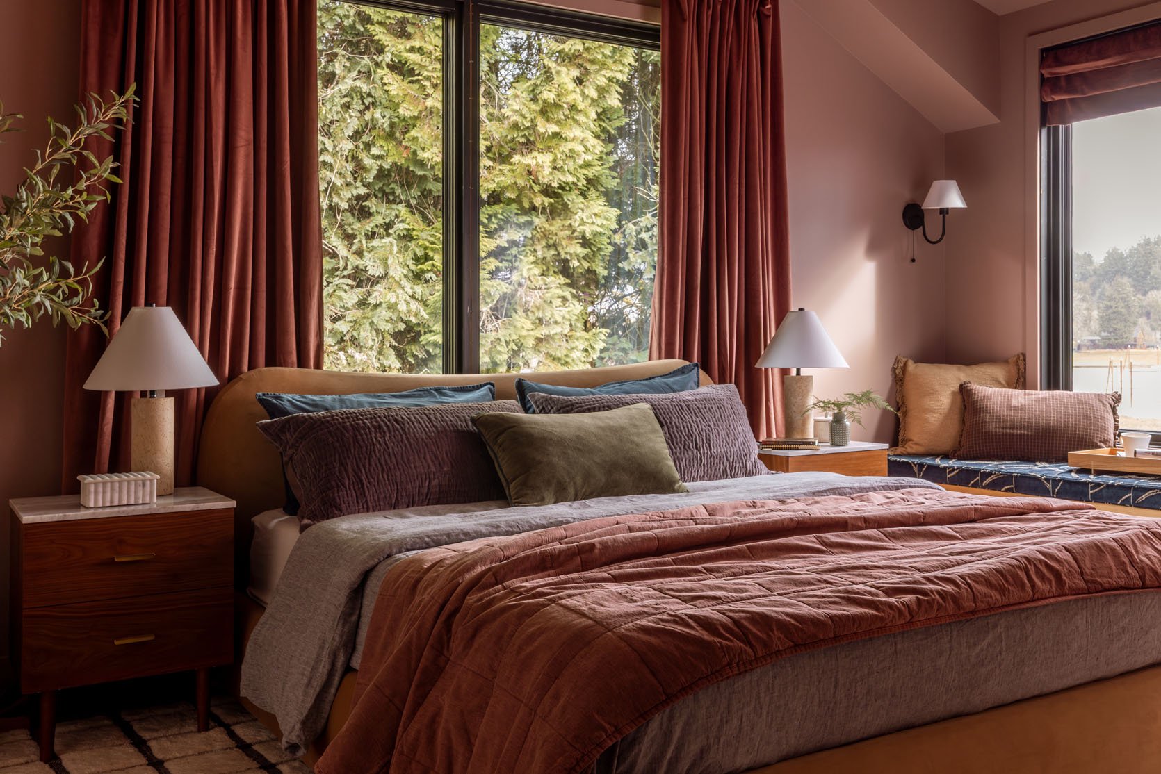 This guest bedroom in the river house was a sponsored room that I think took us a matter of days to concept and execute, and I think we really nailed it. I love designing bedrooms (despite not really dialing in mine yet!). And while tonal bedrooms aren’t for everyone, they are for me – it’s just really easy to execute, warm, and yet feels designed. Choose different hues and just layer, layer, layer.