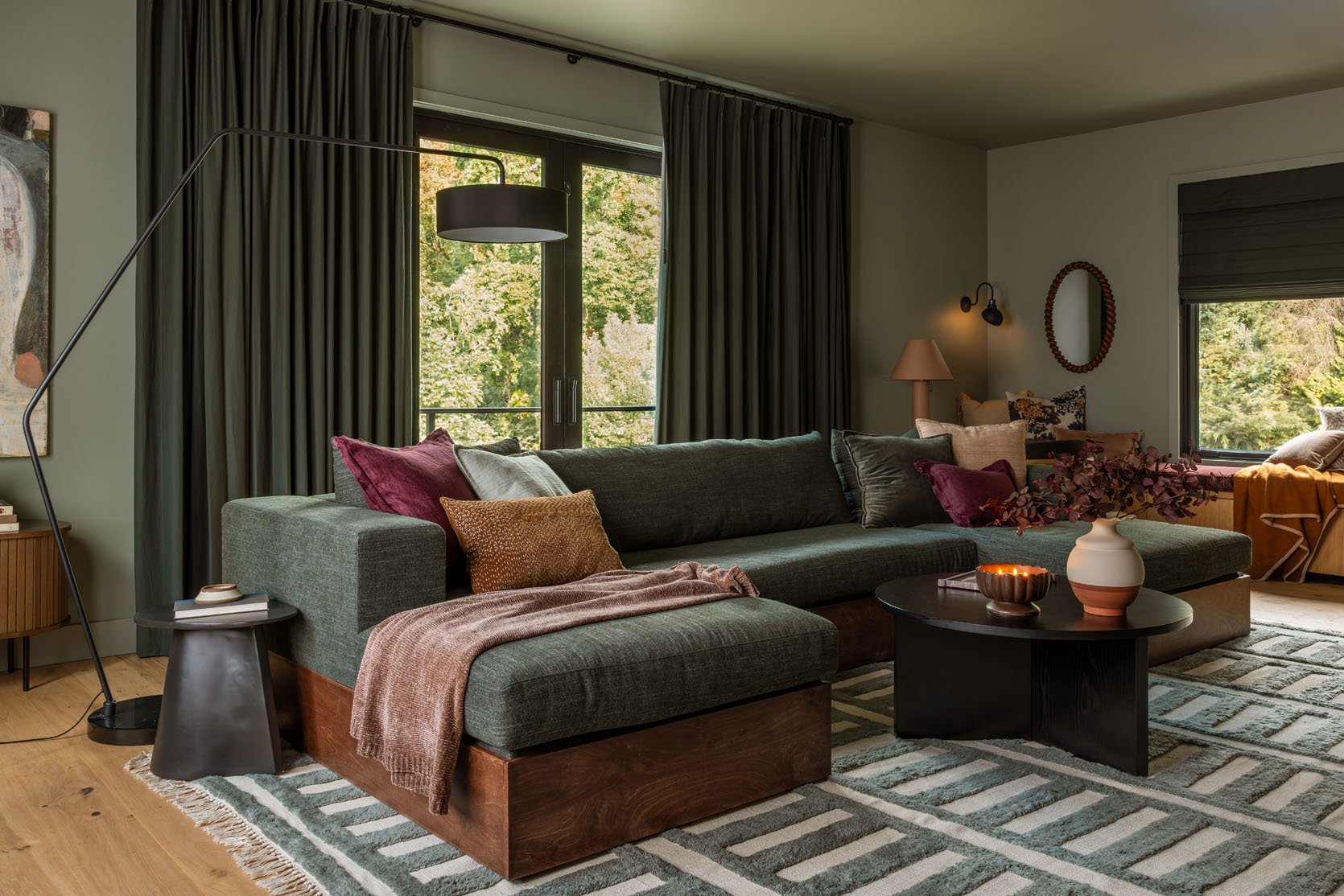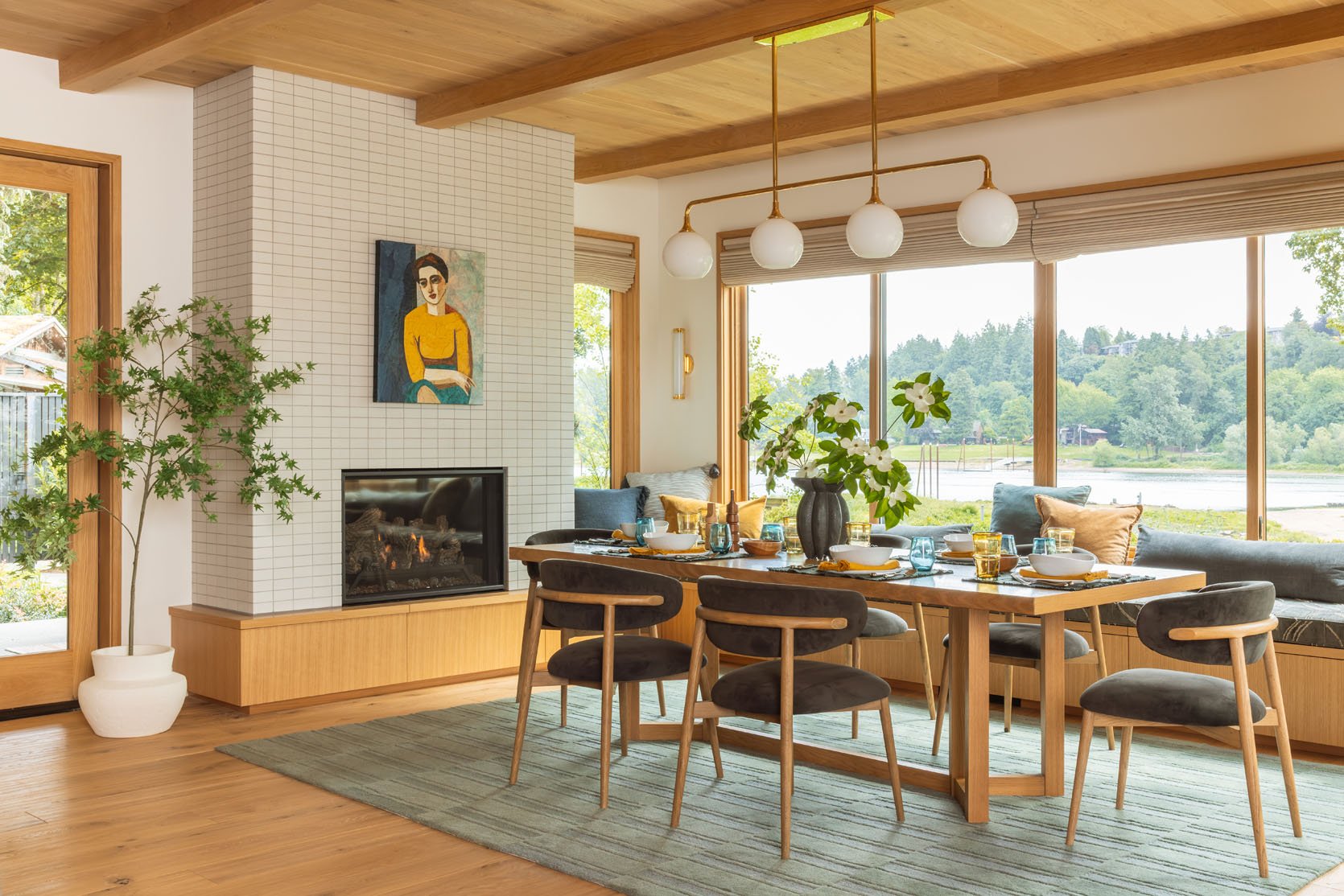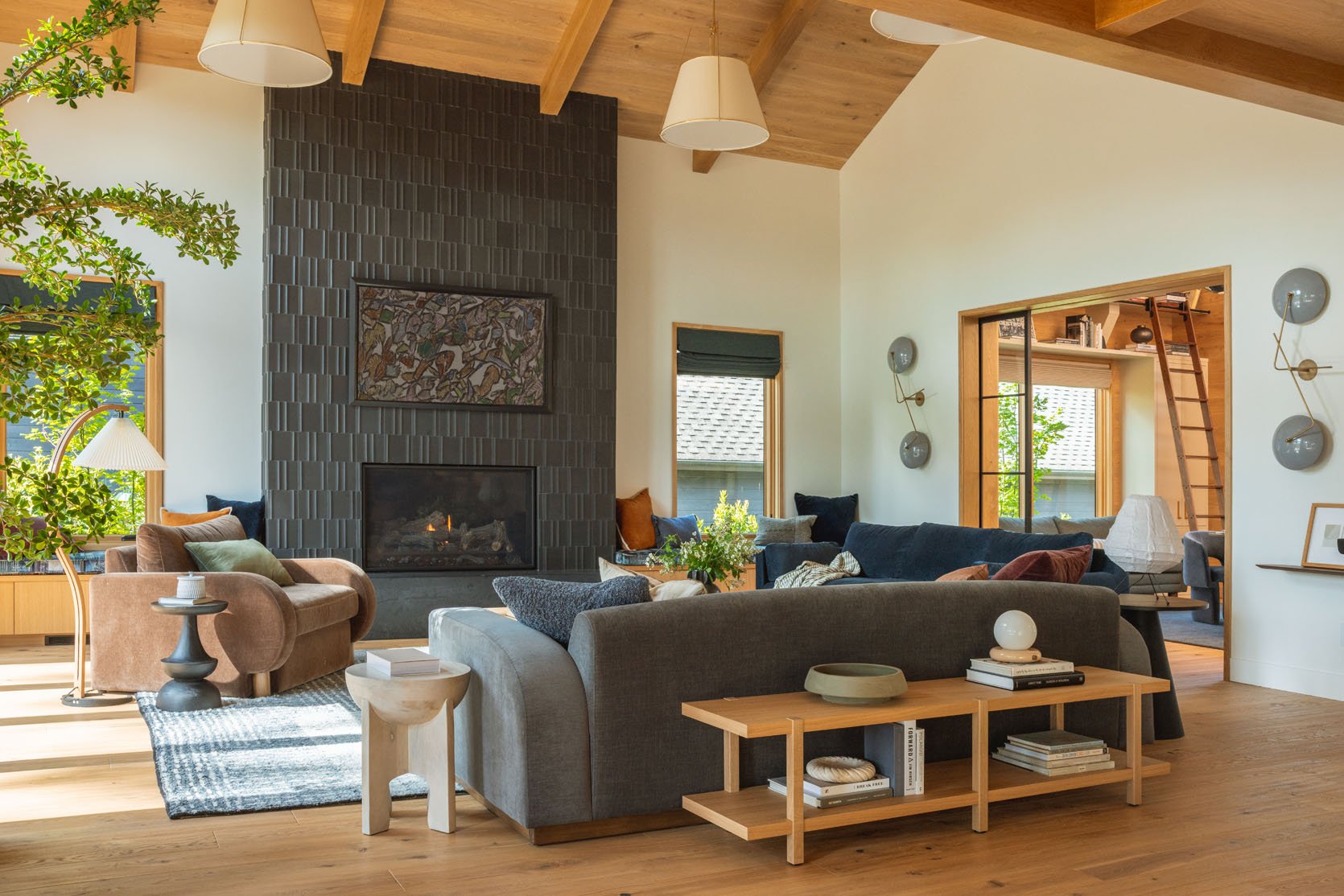 Then the last river house reveal (for a while!), which I think turned out better than I imagined. Why am I so good at designing other people’s living rooms but struggling so much with my own???!!!! This one is so comfortable, cozy, warm, and yet big. The Baby Barb is Baby Barbing hard over there.