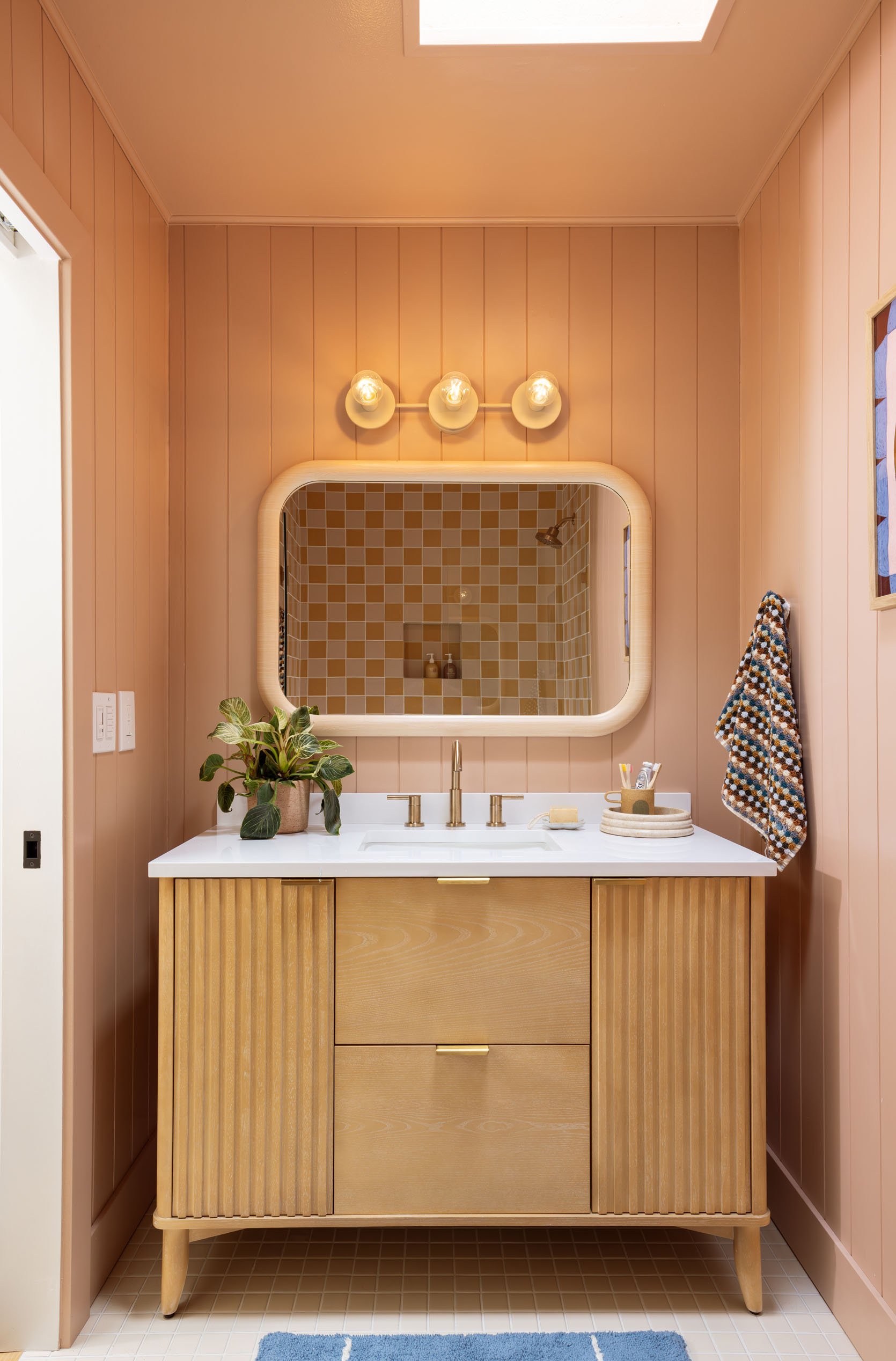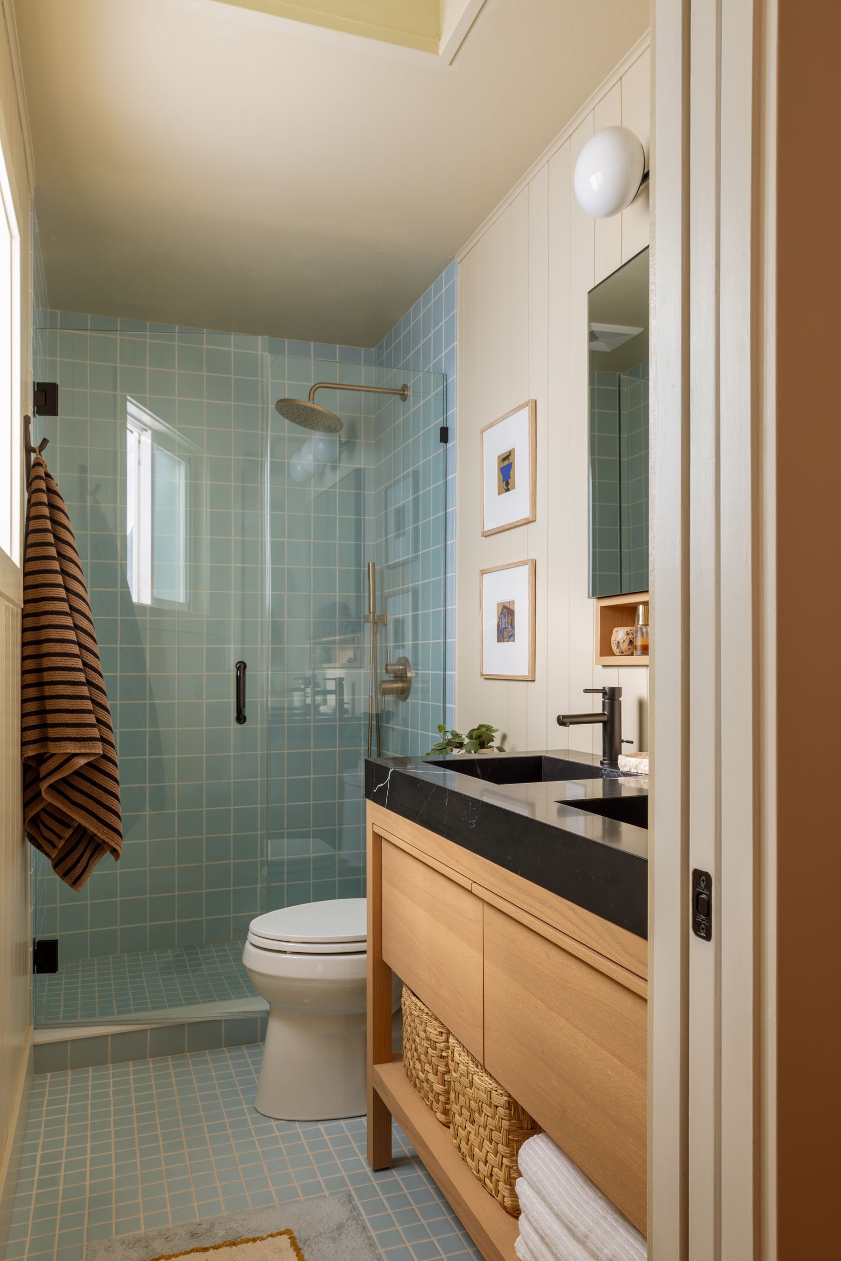 Kaitlin then tackled her bathrooms in her 1970s house that looked so good, so her and so appropriate. She doesn’t know which one she loves more – their bathroom (above) or her girls (below).