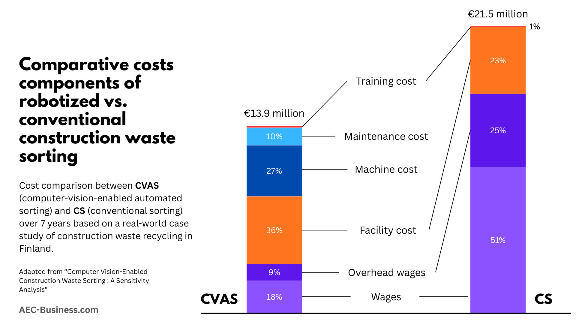 Cost comparison of robotized vs. conventional construction waste sorting (Image: AEC Business)