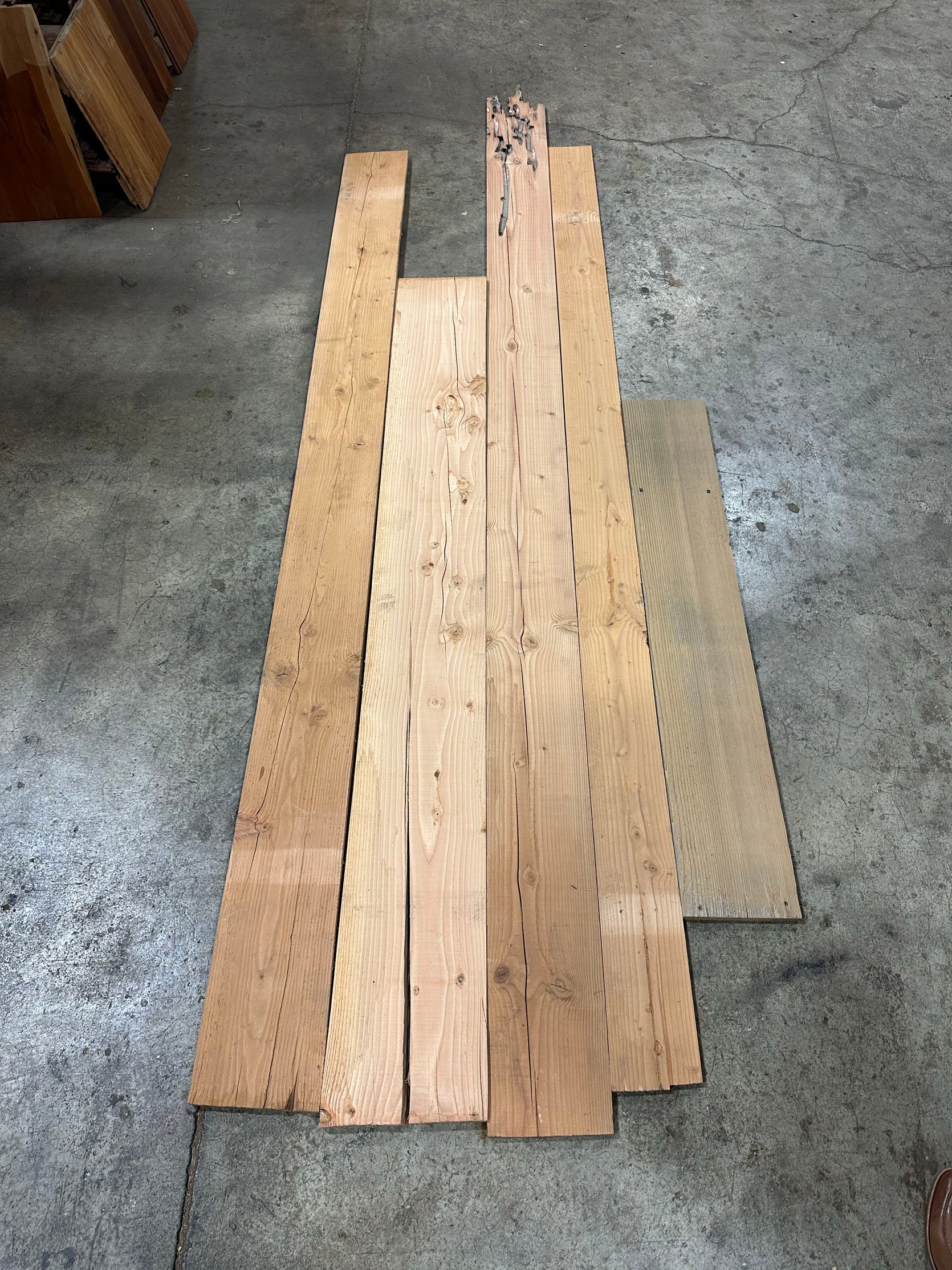 We pulled together all of these boards, which we thought maybe we could clad and then stain the same, so they had a bit of uniformity (the grain was really pretty), and it’s still something we are considering.