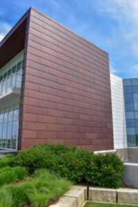 Most recently, Linetec’s Copper Anodize finishes were selected for the University of Minnesota’s College of Science and Engineering’s recently renovated and expanded Fraser Hall. The nearly 100-year-old building underwent a complete redesign by VJAA and BWBR Architects. M.G. McGrath fabricated and installed a custom, copper-colored, perforated, sun shade system on the five-story addition.